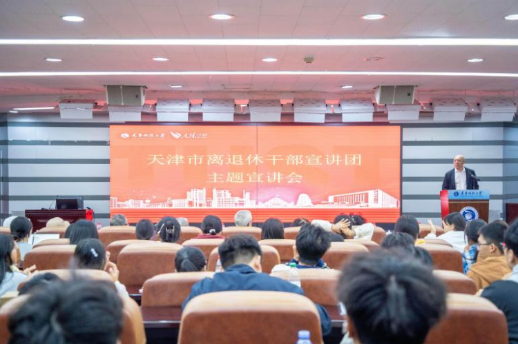 为深入学习《习近平谈治国理政》第五卷,全面贯彻习近平总书记关于老干部工作的重要论述及视察天津时的重要讲话精神,充分发挥市离退休干部宣讲团的示范引领作用,带动全市各级老干部宣讲团高唱主旋律、弘扬正能量、传播好声音,为天津的高质量发展贡献“银发力量”。近日,天津市离退休干部宣讲团在我校举办了一场以“传承红色基因,赓续红色血脉”为主题的宣讲会。我校党委副书记贾启君、市老干部局组宣处处长敖家伟、副处长胡桐磊以及市教委离退休干部处二级调研员张弘出席活动。我校学工部、离退休工作处主要负责同志,离退处管理干部、老同志以及师生代表共计200余人参加活动。
